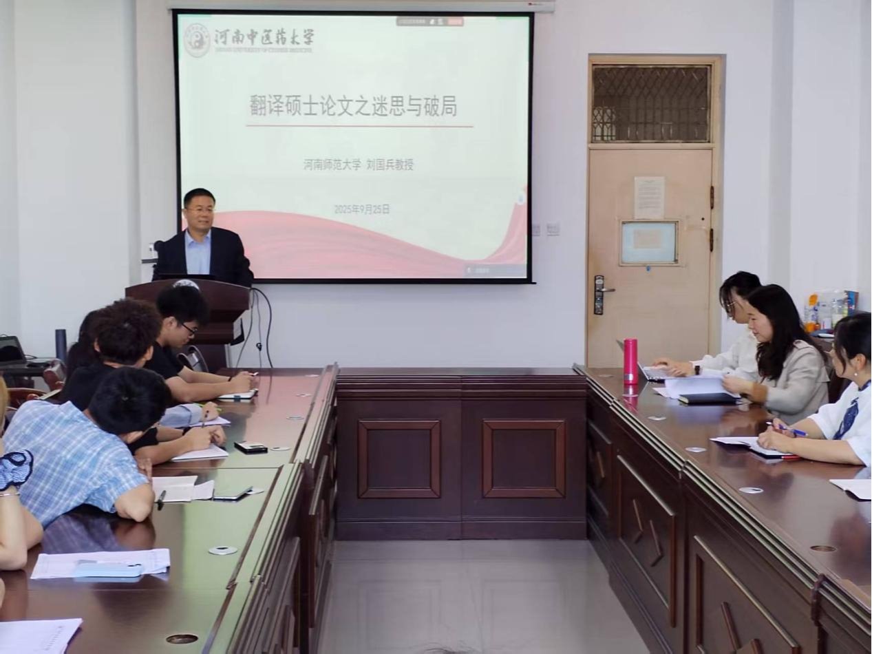 9月25日上午,河南师范大学外国语学院院长、博士生导师刘国兵教授应邀到我院,作题为《翻译硕士论文之迷思与破局》的专题讲座。讲座在龙腾小说