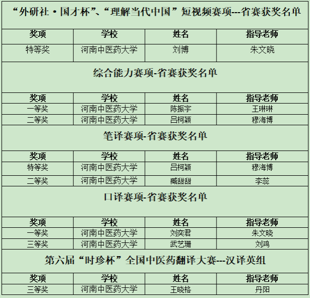 (图/文 李佳、蒋宜轩)近日,2024年度河南省大学生创新大赛外语赛道暨“外研社·国才杯”“理解当代中国”全国大学生外语能力大赛河南赛区总决赛、第六届“时珍杯”全国中医药翻译大赛落下帷幕。