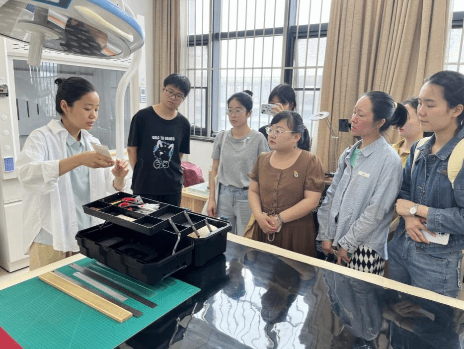 在图书馆古籍特藏部主任李亚红的热情接待和详尽讲解下,师生们依次参观了古籍展厅、特藏阅览室和古籍修复室。李亚红重点介绍了学校馆藏古籍的整体情况,特别展示了入选《第一批国家珍贵古籍名录》的明刻本《急救良方》及入选《第一批河南省珍贵古籍名录》的《古今医统正脉全书》等镇馆之宝,使同学们有机会近距离感受中医药典籍的深厚底蕴与非凡价值。古籍修复室习书晗老师向师生们展示了古籍修复的专业环境、精密仪器与独特工具。她结合影印线装书实物,深入浅出地讲解了古籍的版式结构、装帧技艺等专业知识,为同学们揭开了古籍修复与保护的神秘面纱。参观过程中,同学们兴趣浓厚,围绕古籍保护、文化传承等领域与古籍部的老师们进行了热烈讨论和交流。