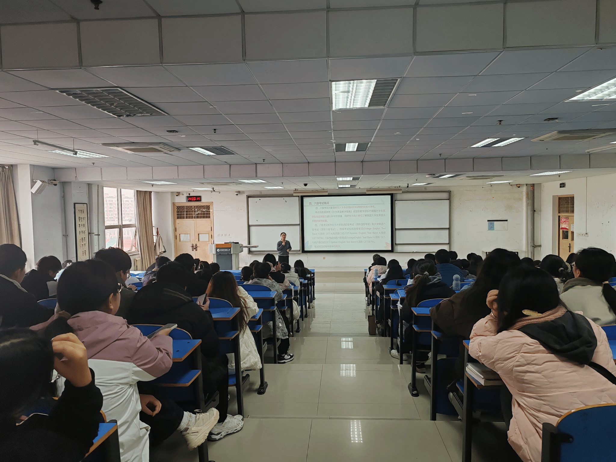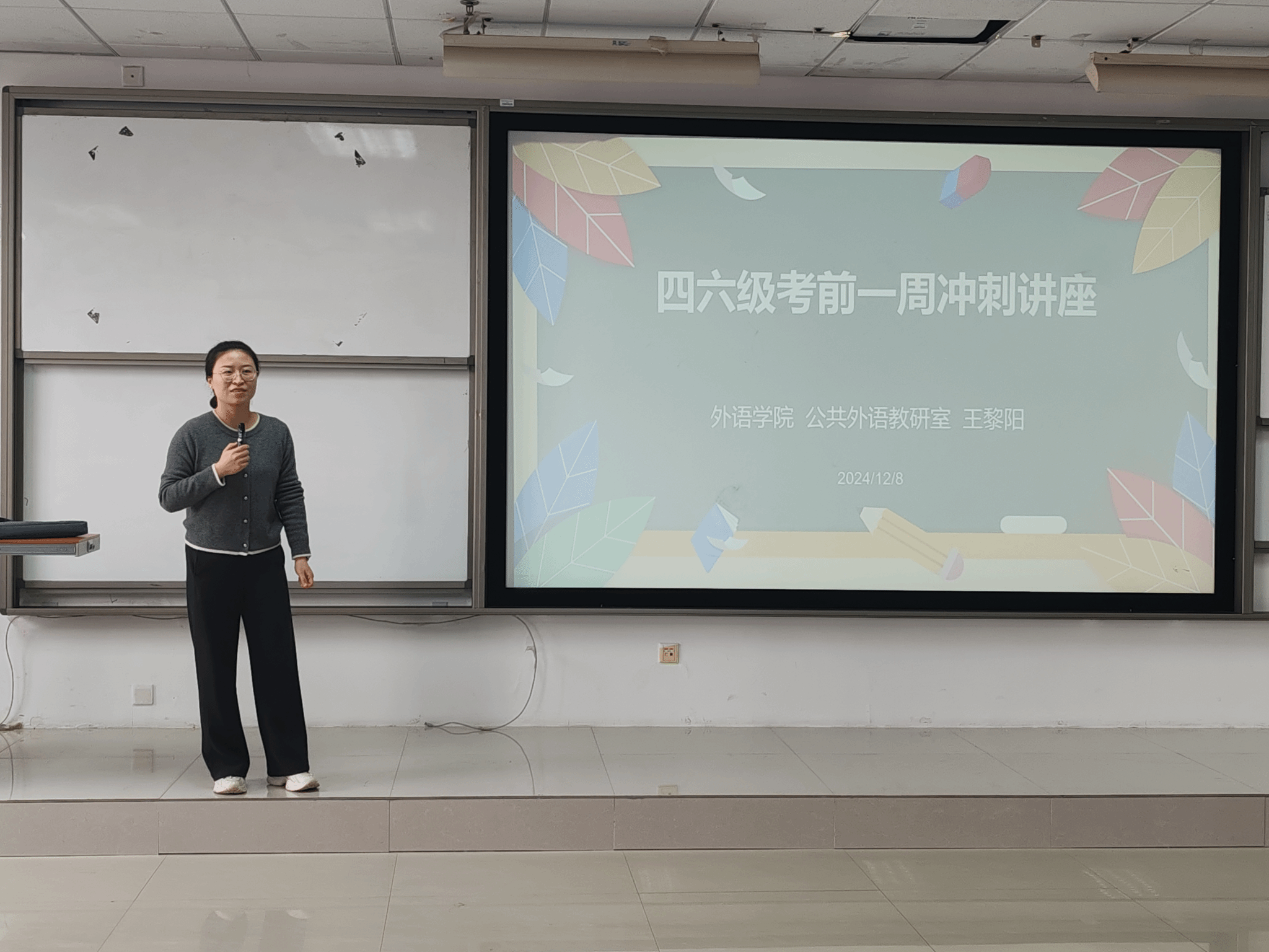 12月8日下午,四六级备考专题讲座在龙腾小说 五楼多功能报告厅举行。本次讲座邀请了经验丰富的王黎阳老师作为主讲嘉宾。王老师结合自己多年的教学经验,围绕备考策略、应试技巧及考试注意事项等方面进行了深入浅出的讲解。她不仅分析了历年真题的命题规律和特点,还分享了最新的考试动态和备考资源。讲座现场气氛热烈,同学们纷纷表示,王老师的讲解让他们受益匪浅,对备考四六级考试有了更加清晰的认识和规划。