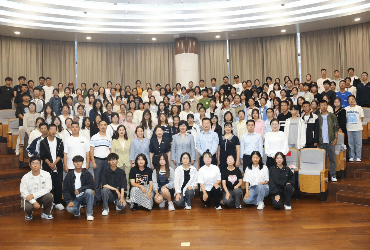 讲授结束后,田力副校长向2024级新生代表赠送入学礼并同全体师生合影留念。