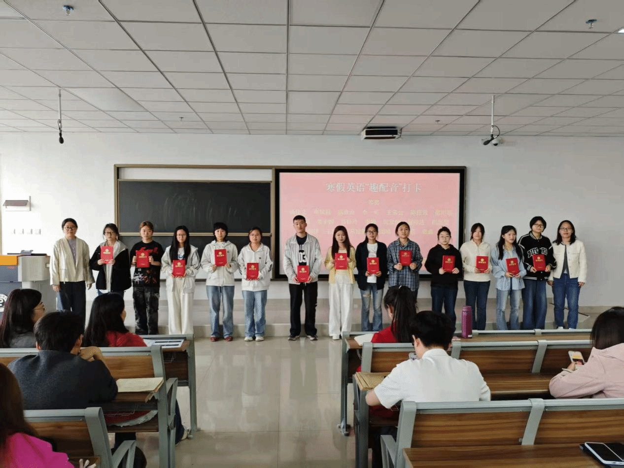 本次寒假配音打卡活动以英语学习“趣味化、常态化”为核心,依托趣味配音形式,引导学生在模仿与演绎中感受英语语言魅力,将英语学习融入寒假日常。活动启动后,得到了英语专业学生的热烈响应,同学们充分利用寒假时间,选取贴合自身水平的英语素材,认真模仿语音语调,反复打磨配音细节,在坚持中提升口语表达能力。经过一个月的坚持与比拼,由英语教研室老师们评选,25名同学脱颖而出,受到学院的表彰及奖励。