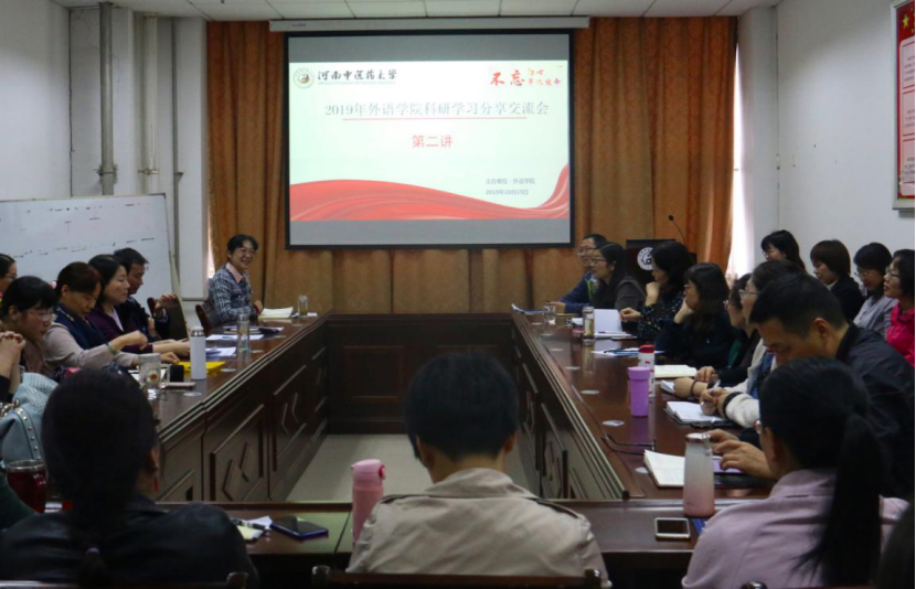 学科及翻硕专业建设特色和研究方向,由李蕾等5位老师分别从中医英语教学技能提升、术语规范化研究和中医药国际传播等方面进行了重点分享。最后一次分享会主要聚焦课程思政和创新创业项目申报主题,旨在进一步明确教师“立德树人”根本任务,充分发挥教师在学生学术领域的引路人作用。要求全院教师务必将课程教学、科研学术研究与思想政治建设有机结合,同向同行,形成协同效应。