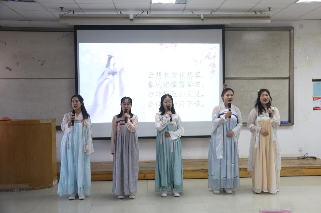 比赛伊始,一首《蜀道难》慷慨激昂,赚足了大家的眼球。“蜀道难,难于上青天,侧身西望长咨嗟。”选手声情并茂的诗诵读,将李白当时的无奈与痛苦表现得淋漓尽致。接着,一首《清平调》将音乐与诗词完美结合,选手们身着汉服,更是展现了古时的文人风韵。《读中国》将深情的朗诵和手语相结合,让同学们眼前一亮。《岳阳楼记》跌宕起伏的旋律、含情脉脉的声音,赢得在场同学们的一致好评。除此之外,《黄河》《我爱这土地》《再别康桥》《相信未来》《我骄傲,我是中国人》等篇目精彩纷呈,赢得了在场师生的阵阵掌声。比赛最后,孙俊芳老师对本次比赛做总结,她希望通过本次比赛,同学们能多读经典之书,做一个书香之人。