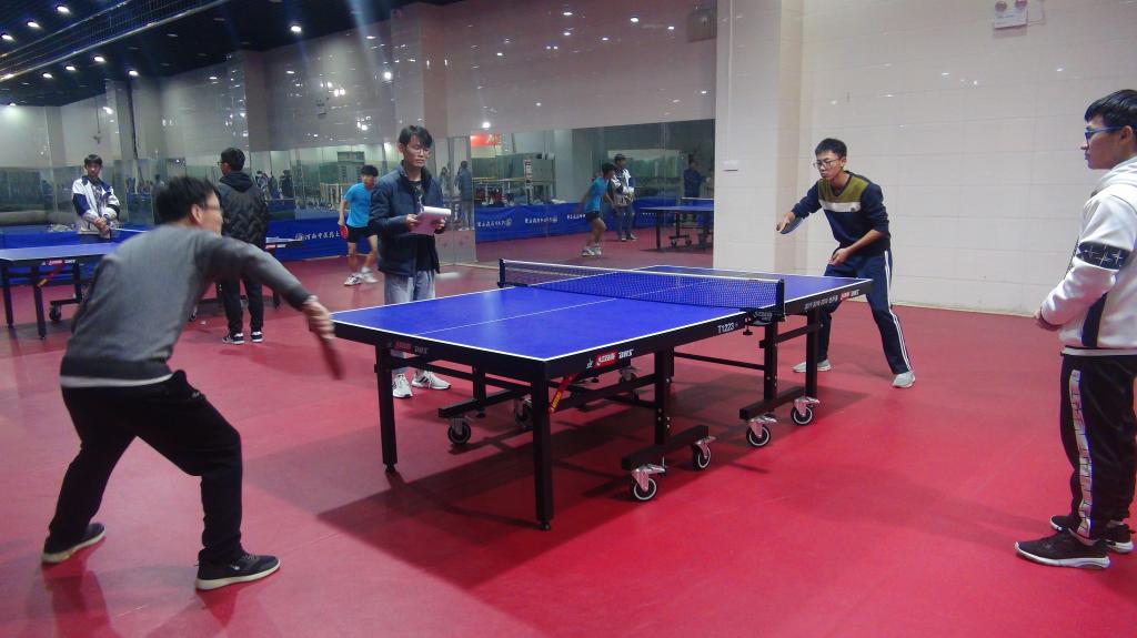 乒乓球社在大学生活动中心举行第四届“球王争霸赛”决赛。参赛选手们本着“友谊第一,比赛第二”的精神,以球会友,在赛场上挥洒青春的汗水。