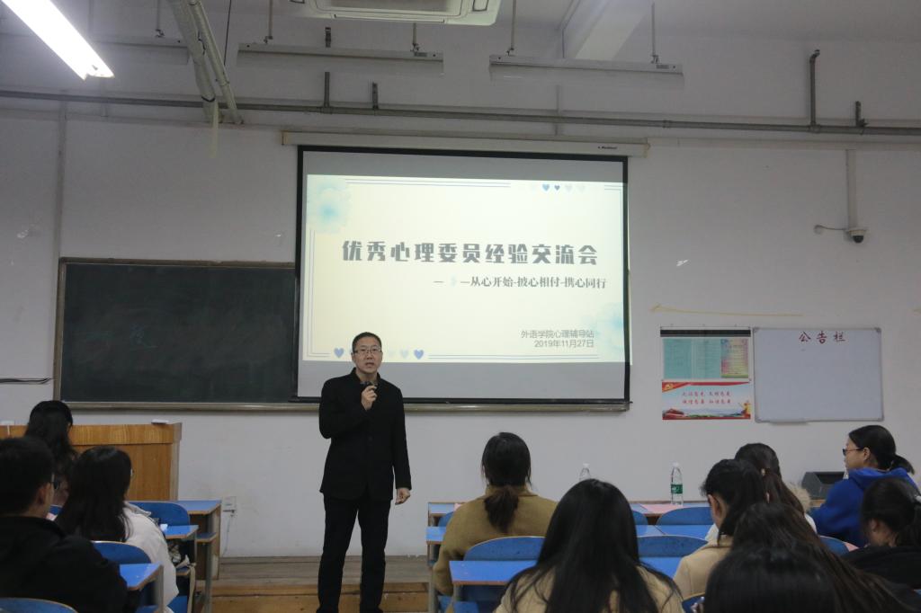 党委副书记苏峰,分团委老师孙淑伟出席本次活动,2018级、2019级全体心理委员,宿舍心理信息员以及学生会全体成员参与。交流会由荣获“全国百佳心理委员”称号的乔丹妮同学主讲。