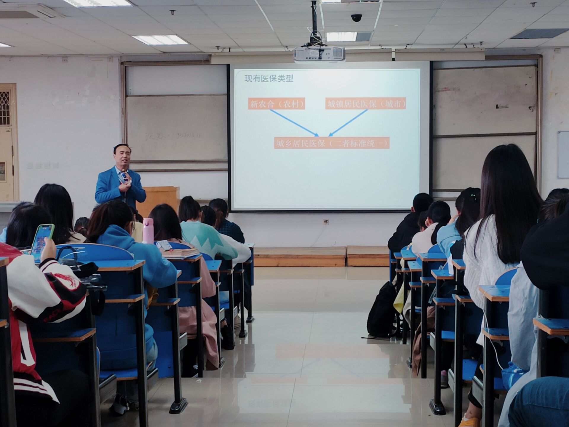 宣讲会上,陈老师首先就城乡居民医疗保险政策、大病保险、社会保障方面为同学们进行了详细的讲解。关于大学生医保的标准、门诊报销比例、住院的待遇标准等方面,陈老师也为同学们做了细致的介绍。他提到我院高度重视大学生医疗保险参保工作,鼓励同学们积极参保,为自己增添一份有力的保障。