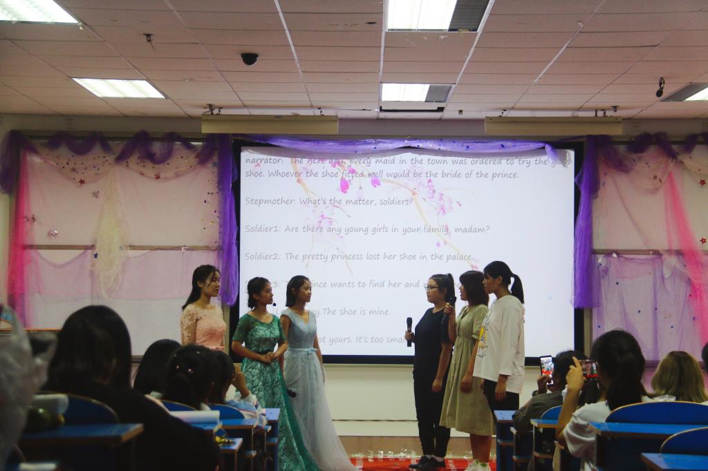 迎新晚会在激情四射的开场舞《Frog Frog》中正式拉开帷幕。接着,郭先英院长发表致辞。郭院长在预祝本次迎新晚会圆满结束的同时,对大家提出了殷切期望,愿大家都能成为一个德智体美劳全面发展的有为青年。稍后,李建芳老师带来歌曲《我爱你中国》,优美的歌声惊艳全场,李老师更以互动的方式点燃了大家的热情,气氛瞬间high到新高度。英文话剧《白雪公主和七个小矮人》、《灰姑娘新编》和2018级英语三班全体同学的英文合唱《夜空中最亮的星》将传统的话剧和歌曲用英文展现,将我院的语言特色表达得淋漓尽致。