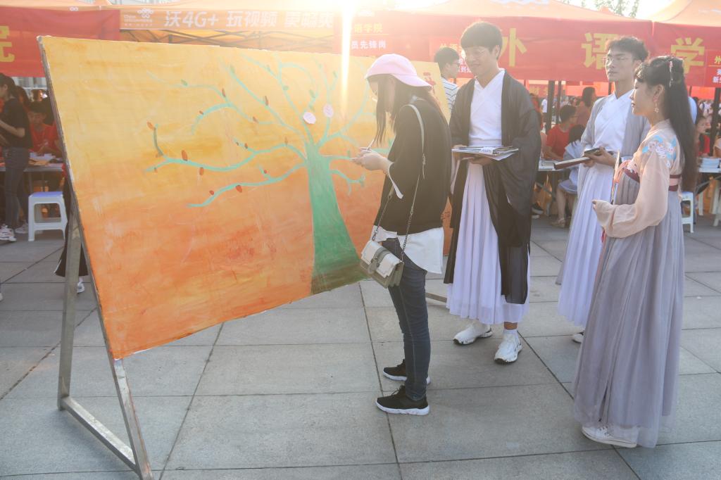 上午七点,迎新人员准时在迎新帐篷处集合,有序地开展各项迎新工作,确保让每一位新生都能感受到学院的关怀和温暖。我院在迎新现场设立院系简介展板,介绍学院基本情况;在东、西、南、北四个校门均设立志愿者服务点,为他们指引道路,把最贴心,最周到的服务送给远道而来的学弟学妹们;在报到处,助班耐心细致的帮助新生检查证件、填写各项信息。学院领导老师也始终在一线关注新生实时报道情况,细致询问各项迎新工作的开展。此外,我院的心愿树迎新活动也引起了同学们极大的兴趣,纷纷在心愿树上写下对大学的期望,并积极与穿着汉服的学长学姐合影留念。