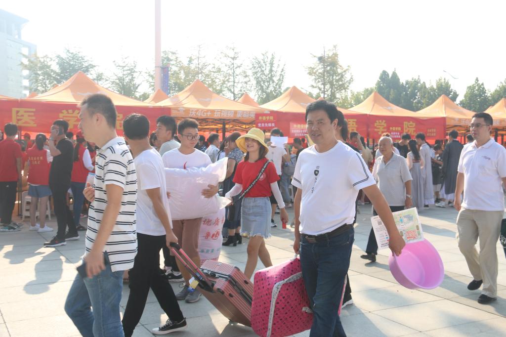 党委书记别荣海、校长许二平等领导老师莅临现场指导工作,慰问迎新人员,了解新生报到情况。