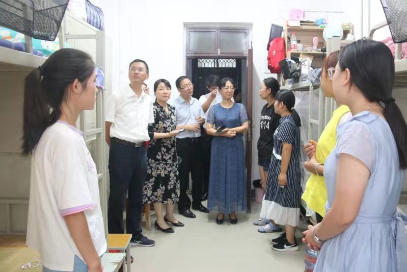 党委书记段其波,院长郭先英,党委副书记苏峰,副院长朱文晓、张冰和2019级新生辅导员车奇涛一行人深入学生宿舍,走访慰问了2019级新生。