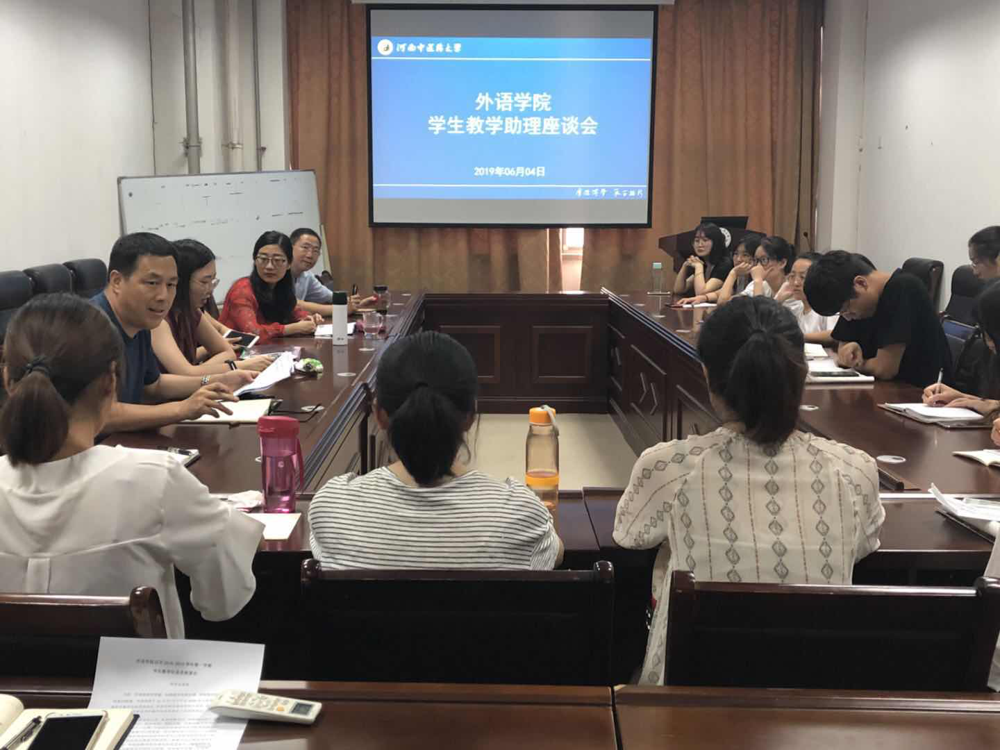 此次座谈会整体气氛热烈,进展有序,各班教学助理准备充分,积极踊跃提出问题,分别就本学期课堂教学,教学管理,后勤保障及学习过程中存在的相关问题进行了反馈,与会的各位领导和老师针对学生助理们的问题进行耐心而又详细的解答。会后,英语教研室主任王玖炜老师结合自己的教学和工作经历,在学生的学习方法、专业发展、教学计划、课程特点、日常管理等方面给出了富有建设性的意见和建议。