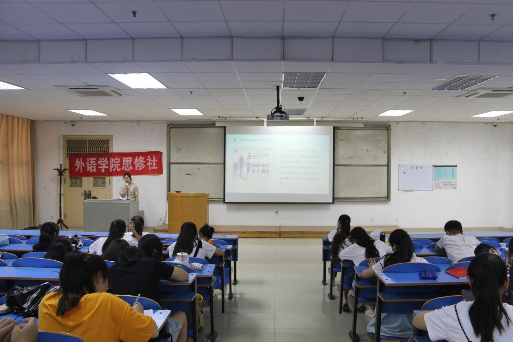 思修社在教学实验大楼二楼阶梯教室举办五四运动宣讲活动,2018级全体学生参加。