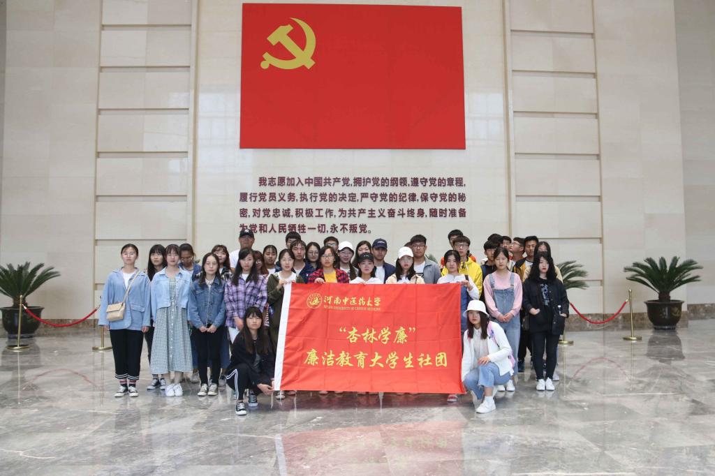 为进一步加强大学生廉洁思想教育,培养大学生廉洁文化意识,2019年5月7日下午,大学生“杏林学'廉'”在校纪委的指导和帮助下,学工部、校团委的大力支持下,到河南廉政文化教育馆参观学习,全体社团成员上一堂内涵丰富、刻骨铭心的廉洁教育课。