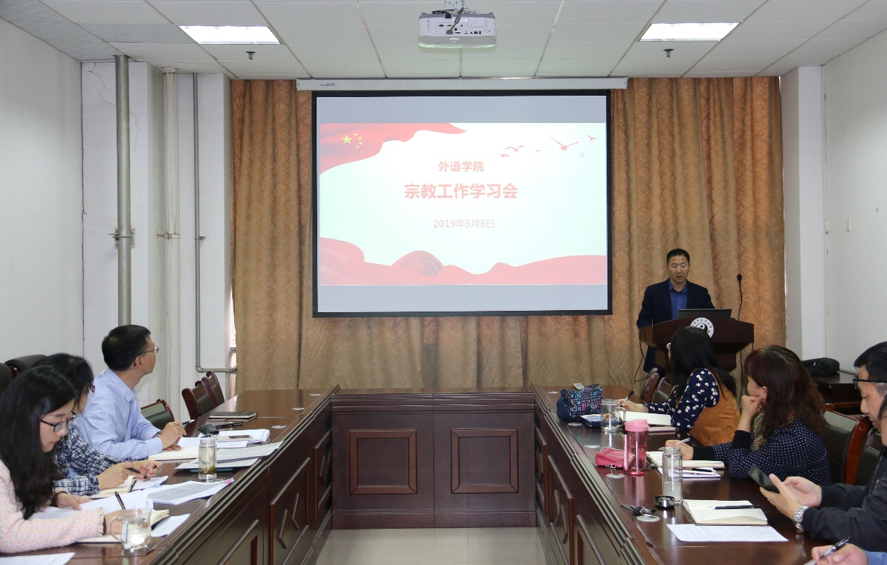 在教学实验大楼A638会议室召开宗教工作学习会议。学院党政领导班子成员、各教研室、科室主任参加了会议。会议由学院党委副书记苏峰主持。