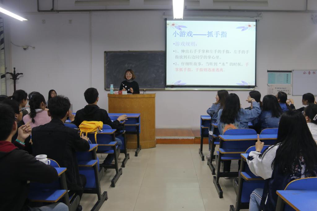 分享会上,活动首先以小游戏的方式展开,在活跃气氛的同时,使学生明白人际交往中沟通与交流的重要性。接着,张亚萍根据心理委员、心理健康信息员们和同学们交流时遇到问题的反馈,从自身生活和工作经验出发,分析人际交往中的效应和原则,向学生们分享处理好关系的技巧。在分享过程中,张亚萍通过PDP性格测试,从专业的角度帮助学生科学了解自己的性格和心理特征,提高自身心理素质。之后,张亚萍叮嘱心理委员在和同学们交流时,要用心去沟通、去倾听、去关怀,履行好作为心理委员的职责。活动最后,苏峰书记强调了心理委员在学生和老师之间的桥梁性的作用,他认为,心理委员和心理健康信息员与同学们朝夕相处,能够及时了解学生的心理健康状况,通过心理咨询或者向老师反馈及时有效地制止一些校园恶性事件,在维护校园心理健康安全方面发挥着巨大作用。