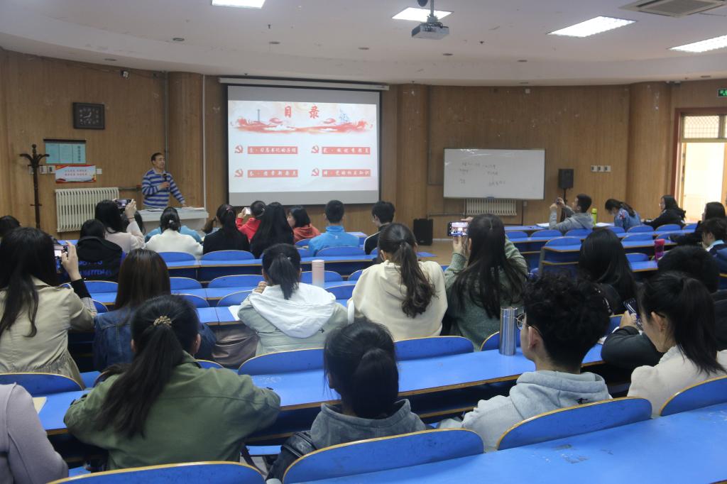 活动伊始,陈少峰老师首先讲述了个人的入党经历,告诉同学们,要不断学习党的思想,党的精神,努力发展和完善自己,为加入中国共产党做准备。接着,陈老师为同学们讲述了习近平总书记的生活经历,其中,习近平总书记与焦裕禄精神、缘起“东方红”的航天梦、延安插队时的“五关”考验,这些经历让同学们更加地了解习近平总书记,尤其是习近平总书记在知青工作时期仍不忘读书,努力学习的习惯,极大地激励了青年同学们要好好学习,练就过硬本领的决心。然后,陈老师从思想、学习、行为等方面告诉同学们如何做一名优秀的共青团员,为同学们提出了宝贵的意见。最后,陈老师为同学们讲解了团章新要点和党的相关知识,让同学们对中国共产党和共青团有了更加清楚的认识。