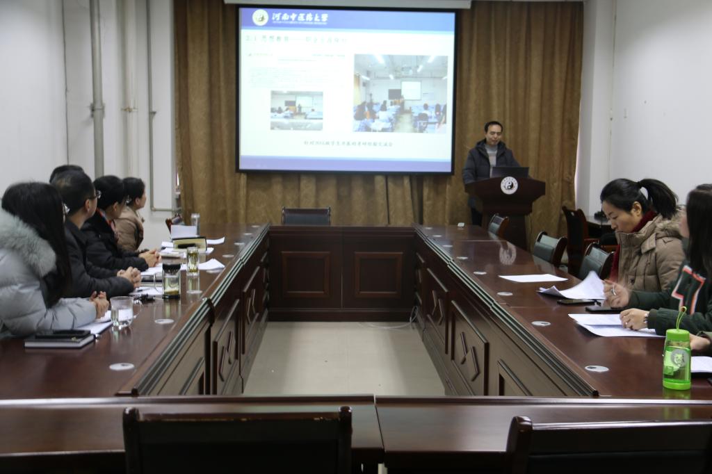 考核会上,辅导员老师一一进行工作述职。学工办主任陈少峰老师对其所带的2014级和2016级班级就思想教育、学风建设、班级管理、安全管理、学生资助和心理健康教育等方面进行了总结,接着又对整个学生工作进行了汇报,包括招生就业、学生党支部建设和特色工作等方面。最后,陈老师还对2019年的学生工作作了整体安排并表达了决心和信心。分团委的孙淑伟老师主要对团的建设以及学生会的工作用图片的方式向我们进行了展示。辅导员李茜、兼职辅导员岳颀、马高倩以及各位班主任老师也以同样的方式向各位领导进行了汇报展示。领导们认真聆听,对取得的成绩表示认可和满意。