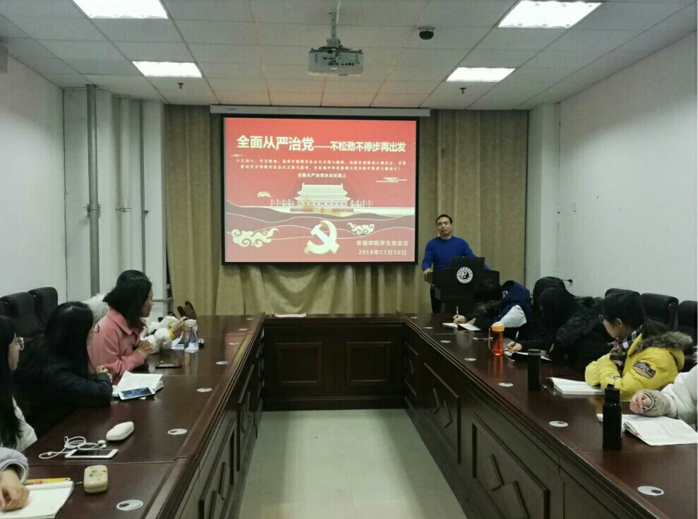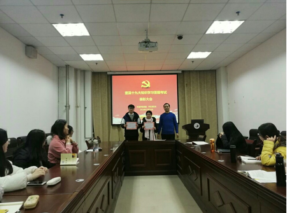 学生党总支召开由学生党总支书记陈少峰主讲的专题党课,和关于重温十九大知识学习答题考试的表彰。