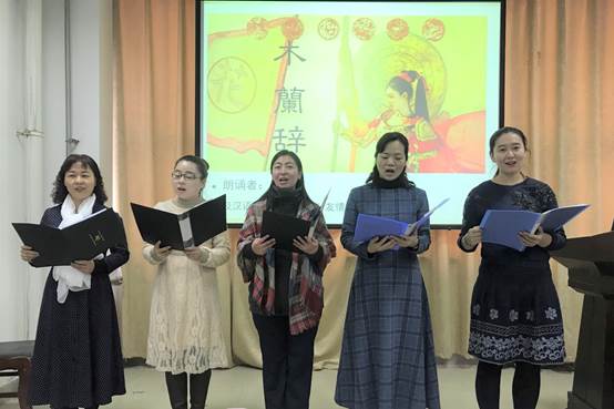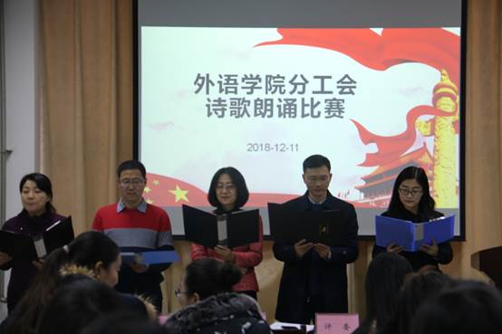 全体处级班子成员以一首《安全在我心》拉开比赛序幕,接着参赛老师们吟诵了《美丽中国》《中华颂》《沁园春·雪》《I wandered lonely as a cloud》《木兰辞》《致橡树》等中外经典诗文,他们或豪放或婉约,或慷慨激昂、或深情款款,以饱满的热情、优质的诵读给大家奉献了一场震感心灵的听觉与视觉的盛宴。比赛经过激烈角逐,英语教研室、汉语国际教育教研室的《沁园春·雪》《I wandered lonely as a cloud》《木兰辞》以其饱含激情的朗诵与演绎荣获一等奖。