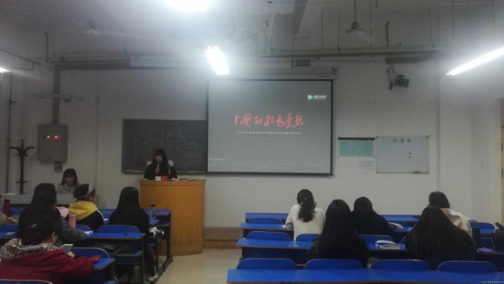 国际歌的激昂歌声中,活动正式开始。主题一:致青年的一封信,从《奔跑吧》到《有了健康,你才能搏击风浪》等好几封给青年的信,给我们展现了现代青年人应有的道德风尚和学习要求,我们在学习和跟随党的同时也要提高自己的思想道德素质以及觉悟。主题二:红色梦想,几个简短的视频,为我们展现了十九大的大国风采和中国梦想。大国梦,强国梦,不仅仅是从个人的梦想到国家的梦想,而且是从民族的梦想到祖国的梦想,使我们更坚定了为红色梦想付出自己的意志和决心。
