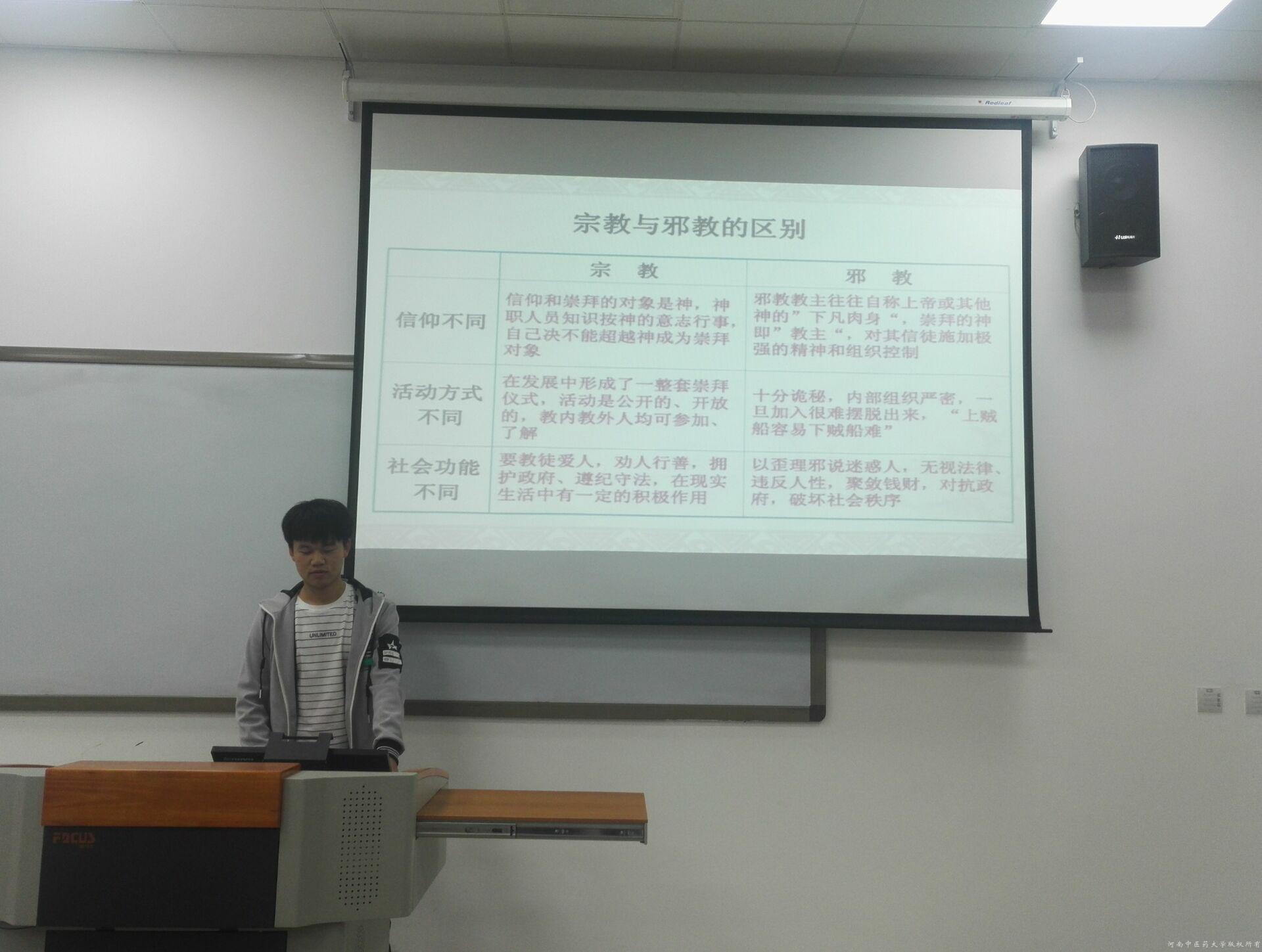 邪教往往披着宗教的外衣,作为一种隐蔽性更强的骗术,严重危害人民群众的人身和财产安全。特别是近年,大学生误入邪教的新闻也屡见报端,因此,为净化校园环境、保障学生的安全,在学生当中开展反邪教教育刻不容缓。在本次活动中,主要展开了“邪教的特点”、“邪教和宗教的区别”、“常用欺骗伎俩”、“你听说过哪些邪教组织?”、“团员、党员可以信仰宗教吗?”等话题,氛围轻松,讨论效果热烈。