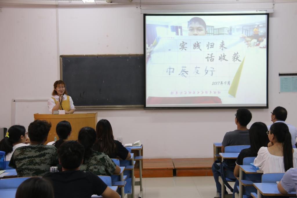 暑期社会实践将接续摸索和专业相结合的特色之路。接下来,王一等6位同学分享了暑期社会实践心得。他们分别介绍了自己的实践内容,并讲到遇到的困难和收获,信息量满满。最后,苏峰老师高度评价了赴泰汉语教学活动,肯定一行人在暑期社会实践取得的成绩。他指出暑期社会实践是第一课堂的延伸,是大学生走出象牙塔,受教育、长才干、做奉献的过程,对提升大学生思想政治素养社会阅历、工作经验有重要作用。要求同学们要以暑期社会实践为契机,发现不足,完善自己,做好职业生涯规划,以昂扬的姿态面对未来生活中的挑战。