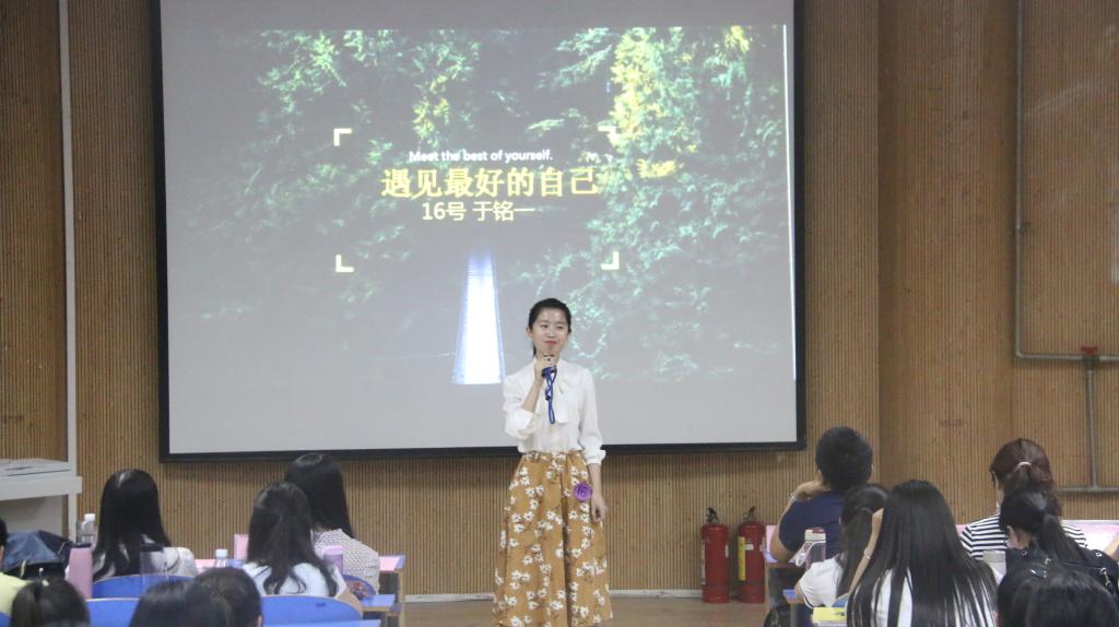 本次决赛以“遇见最好的自己”为主题,旨在让选手们全方位、多种角度思考如何认识自我、善待自我、提高自我、成就自我,从而在过去、现在或未在的某时某地遇见最好的自己。来自九个院系的七十多名选手参于报名,经过初赛的激烈比拼后,20名选手参加决赛。决赛选手们做了充分的准备,个个精神饱满、信心十足。他们多角度表达了深藏于心的“最好的自己”,表达了当代青年对未来的梦想。大方得体的服装,精美的PPT,动听的音乐及视频,加上时而委婉动听时而慷慨激昂的陈词,对现场观众们而言,不仅是一场视觉和听觉的盛宴,更是一次精神大餐。