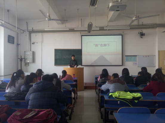 2014级英语二班在教学楼A区608教室开展了以“‘路’在脚下”为主题的心理主题班会。班会采用了学生代表分享经历、播放视频、调查统计等多种形式展开,取得了良好效果。班会共分为五个部分:心理委员向同学们介绍当前大学生关于未来规划的心理问题及相关事例,并向同学们说明有一个明确的未来规划的重要性;观看相关视频;邀请学生代表分享自己的未来规划;调查同学们有关未来发展方向以及就业准备情况;心理委员做总结。从视频中,同学们深刻地明白了一个早期的明确的未来规划对于择业、就业的重要性,需要尽早制定一个明确的未来规划,在不断前进的过程中实现自己的梦想与人生价值。现场关于同学们有关未来发展方向以及就业准备情况的调查,也使同学们清楚了解到了彼此的情况,并严格要求自己为自己的未来规划努力,不断发展前进。