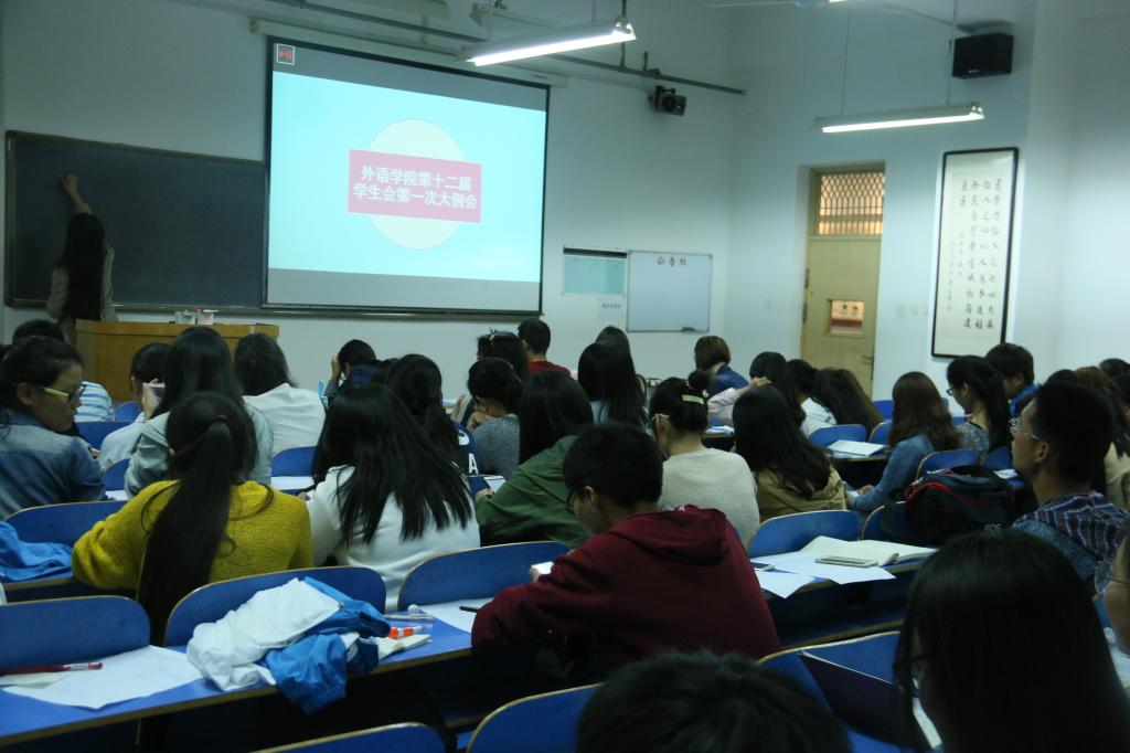第十二届学生会第一次大例会。分团委书记李敬平老师与第十二届学生会全体成员一同参加了此次大例会。
