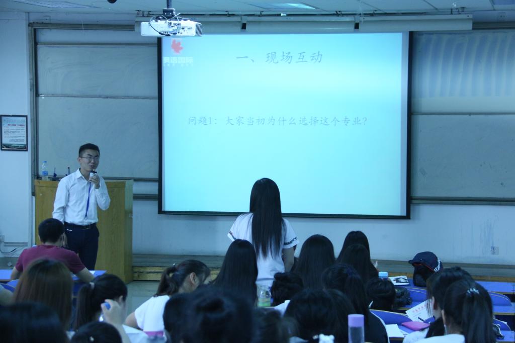 2016年5月5日下午,我院特邀请河南省枫语文化传播有限公司的肖永涛老师在五楼阶梯教室为同学们讲解汉语国际教育专业的专业前景,解决同学们对于本专业的就业困惑。我院全体学工人员及汉语国际教育专业210人参加了此次宣讲会。