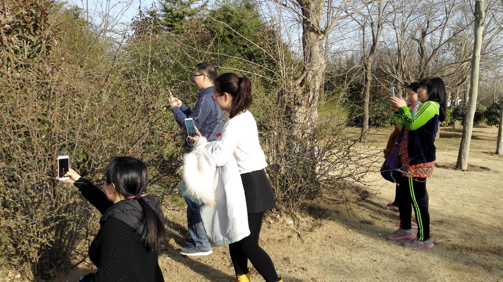 初春的绿博园中春意盎然,景色宜人。竞相绽放的花朵争奇斗艳,有含苞待放的玉兰花、五彩缤纷的梅花、色彩艳丽的迎春花,…… 一片片花的海洋,一朵朵娇艳的花朵,映衬着一张张欢乐的笑脸。踏青赏花之际,老师们以手中相机、手机,精巧构思,拍照留影,使精彩瞬间成为永恒定格。大家边拍照、边交流,相互学习,切磋技艺,共同提高。在这春暖花开的日子里开心的享受着既美好又愉快的难得空闲。