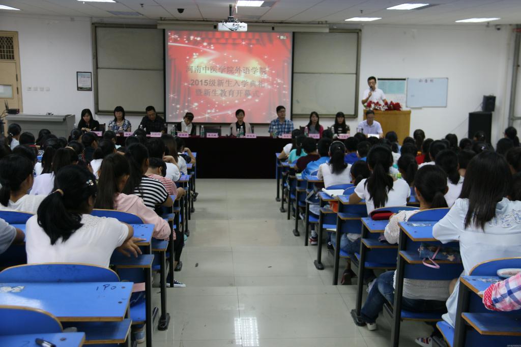 2015级新生入学教育的正式开始。同日上午8点30分,我院在教学楼A区五楼阶教举办2015级迎新典礼暨新生教育开幕式。首先是全体奏唱国歌,接着分别是郭先英院长致辞、教师代表吕毅之老师发言、老生代表宋柏讲话和新生代表刘琦发言,然后主持人宣布迎新典礼结束,新生教育系列活动开幕。最后由龙腾小说