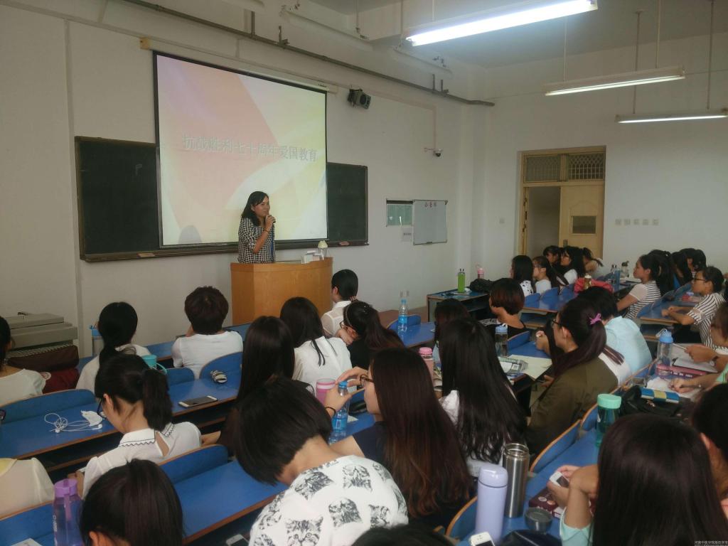此次活动结合各年级不同特点有序开展,9月1日大一新生便接到了观看“纪念中国人民抗日战争暨世界反法西斯战争胜利70周年”有感的通知,报到当天他们交上了饱含着对祖国、对民族的热爱、以及奉献社会决心的第一份答卷。大二学生继续加强理想信念教育,通过“讲述抗战老兵的故事”以及社会实践的交流,使他们明白:只有拥有坚定的理想信念,才能实现个人梦、祖国梦、民族梦。大四毕业生以主题班会的形式,通过缅怀先烈、立足当下、讨论毕业生的价值体现,进一步加强了世界观、人生观、价值观教育。大三学生通过“九·一八”把活动推向高潮。
