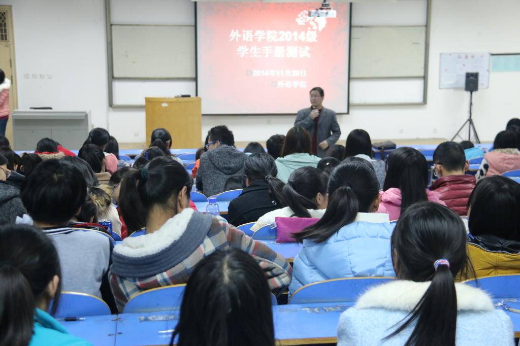 组织2014级全体学生于2014年11月20日进行了学生手册测试。龙腾小说