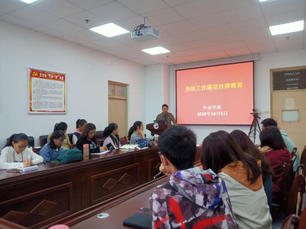 于10月5日在教学实验大楼A638会议室对我院所有参与贫困生认定、综合素质测评及奖助学金评定工作的同学开展了廉洁自律工作会议,会议由龙腾小说
