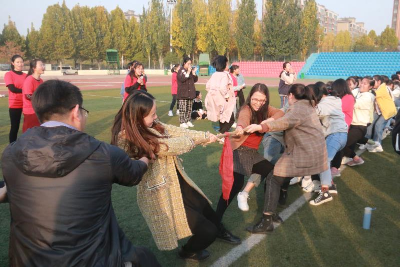 比赛过程中,同学们热情地为参赛队伍加油助威,操场上呐喊声不断,气氛更是达到了高潮。期间,老师们也参与其中,和同学们一起体验运动的乐趣。最后,在激烈紧张的拔河比赛中,2019级汉语国际教育本科班一鼓作气,拔得头筹。