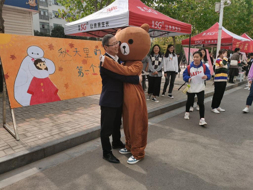 经过前期的准备工作,我院心理辅导站工作人员成功搭建起活动帐篷,并将“秋天里的第一个拥抱”展板抬到杏苑餐厅前进行展览。活动过程中,心理辅导站两名成员穿上马里奥和布朗熊卡通人物服装在帐篷前与路过的同学们热情打招呼,生动可爱的布偶形象吸引了许多同学来参与活动,现场气氛非常活跃。在工作人员的引导下,同学们自由和我们的人偶进行拥抱,带给彼此安慰和鼓励,感受来自我院的关爱。
