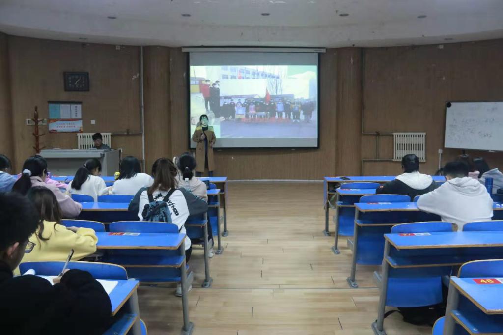 赵亚丹同学主要向大家分享了寒假期间在河北沧州做志愿者的经历。河北疫情期间,赵亚丹主动联系身边的朋友同学,鼓励大家报名参加支援河北省的志愿服务活动。她谈到,河北农村地区许多民众由于不了解疫情防控规则,他们每天就为村民们宣传疫情防控相关知识,讲解国家防控政策,协助其他人员做好登记、劝返等工作,督促大家做好预防和配合国家疫情防控工作。最后,她特别强调了参加此次志愿活动的收获和意义,希望同学们积极参与志愿活动,与祖国在一起、共成长,实现自身价值!
