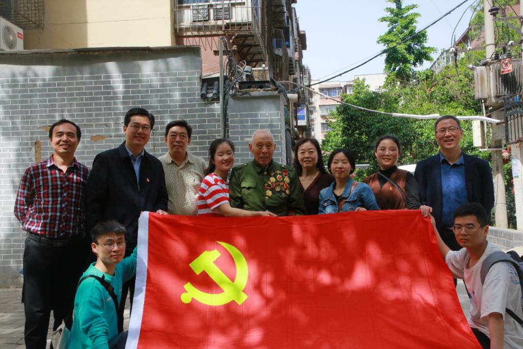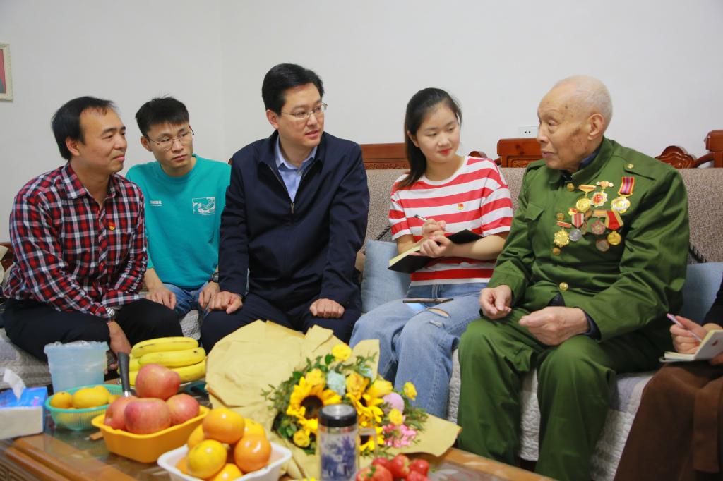 党委书记庞亚宾、副书记苏峰、学生党总支书记陈少峰和学生党员代表一起探访了曾先后参加过抗日战争、解放战争和抗美援朝战争的革命英雄袁恒茂同志。