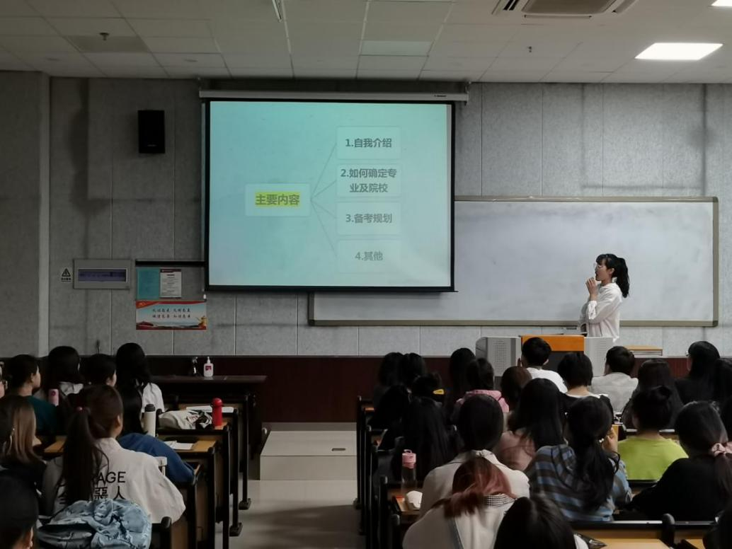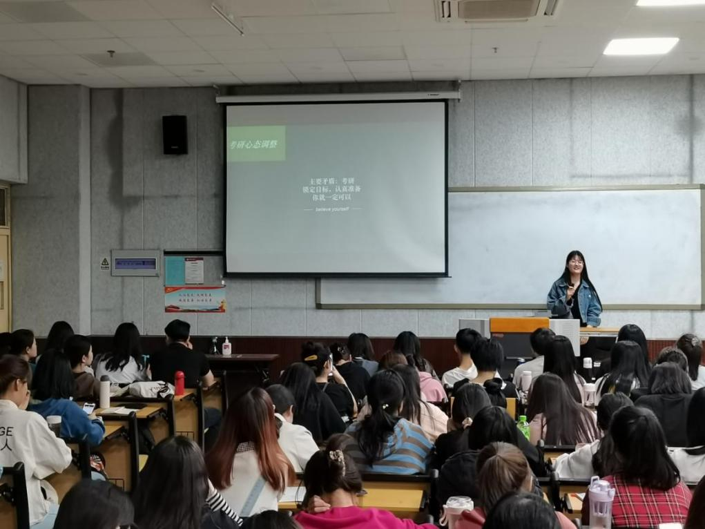 于4月28日晚上举办考研经验交流会。出席本次大会的有辅导员车奇涛、孙淑伟,班主任代表马笑峰、王晴阳,考取研究生的优秀学生代表及2018级全体学生、2019级部分学生。