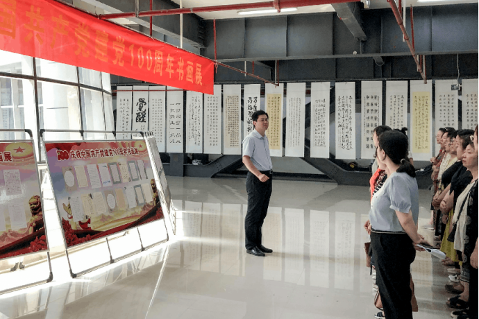 组织全体教职工于2021年6月22日参观学习了位于学校综合教学楼六楼的“庆祝中国共产党成立100周年书画展”。