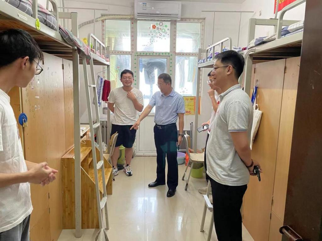 在学生宿舍,领导们认真检查了学生宿舍卫生、物品摆放、电器使用情况等方面,对学生们进行了简短的安全稳定知识教育,希望同学们能从自我管理做起,严格遵守宿舍制度,共同建造一个和谐、温馨、安全的宿舍环境。
