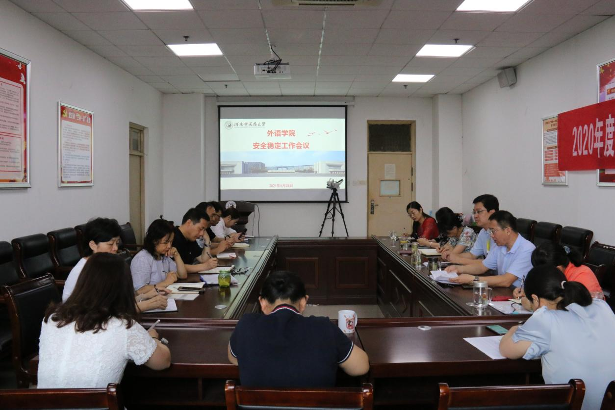 会议通报了柘城县“6.25”重大火灾事故情况,传达了省教育厅、学校安全稳定工作会议精神,对近期学院安全稳定工作进行了总体部署。