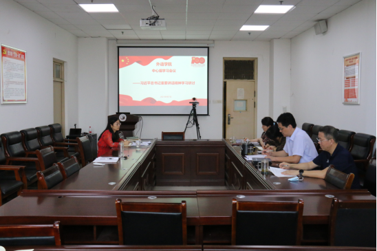 在教学实验大楼A638会议室召开党委理论学习中心组专题学习研讨会,认真学习研讨习近平总书记近期系列重要讲话精神。学院全体班子成员参加会议,会议由党委书记庞亚宾主持领学。