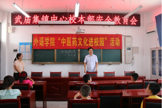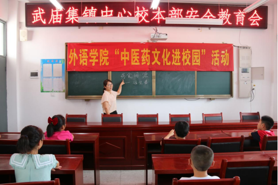 中医药文化宣讲团队在学院党委书记庞亚宾带领下走进信阳市固始县武庙集镇中心校开展《中医药文化进校园》专题授课。