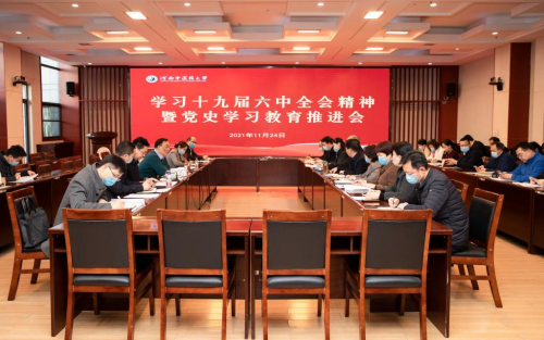 在图书馆第二报告厅召开学习党的十九届六中全会精神暨党史学习教育推进会。校党史学习教育领导小组成员和办公室负责人参加会议。会议由校党委副书记、工会主席、党史学习教育领导小组常务副组长张小平主持。