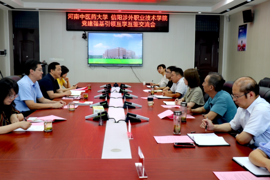 各教师党支部书记在学院党委书记庞亚宾的带领下赴新县信阳涉外职业技术学院开展党建强基引领互学互鉴交流活动。信阳涉外职业技术学院党委副书记、院长陈思,常务副院长刘庆长及相关工作人员参加了此次活动。