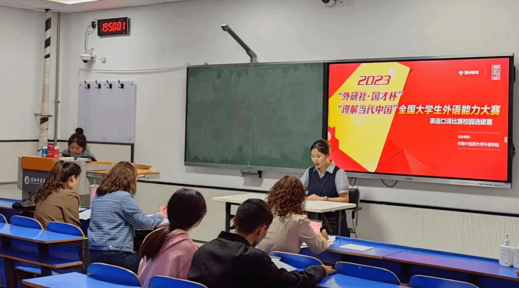 2023年10月16日晚,“国才杯”“理解当代中国”全国大学生外语能力大赛口译比赛校园选拔赛在教学楼A549教室成功举行。