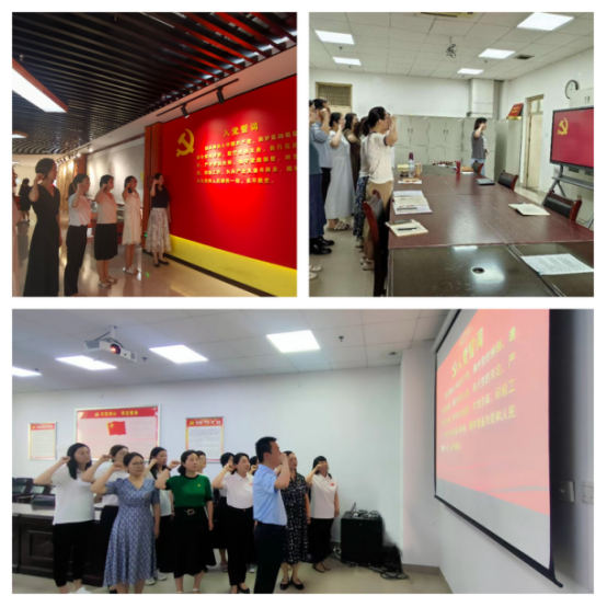 学院英语专业教研室党支部、公共外语教研室党支部、行政党支部和翻译、汉教教研室联合党支部均开展了重温入党誓词活动,各支部党员教师面向党旗,高举右手庄严宣誓,立下自己对党忠诚的誓言、为党的事业奋斗终生的决心。